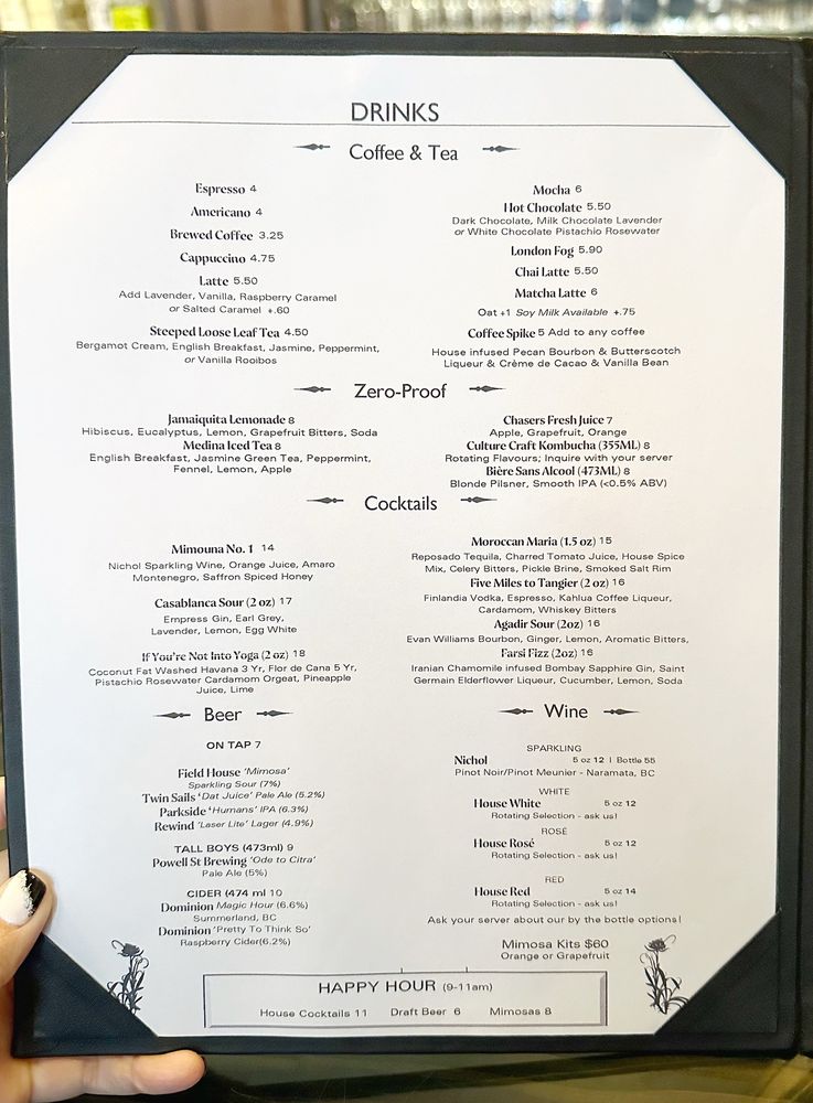 Medina Cafe in Vancouver offers a delightful Middle Eastern dining experience. With vegan and vegetarian options, the menu caters to a variety of dietary preferences. Customers rave about the mouthwatering waffles, unique mimosa with saffron, and flavorful dishes like Saumon Fumé and Le Complet. The cafe's bustling atmosphere and attentive service create a welcoming environment for guests. From the raspberry caramel latte to the Fricassée, each dish is described as delicious and satisfying. The limited-quantity Liege Style Waffle with raspberry caramel sauce is a must-try dessert. With a trendy vibe, diverse menu, and excellent service, Medina Cafe is a top choice for breakfast, brunch, or a special dining experience.